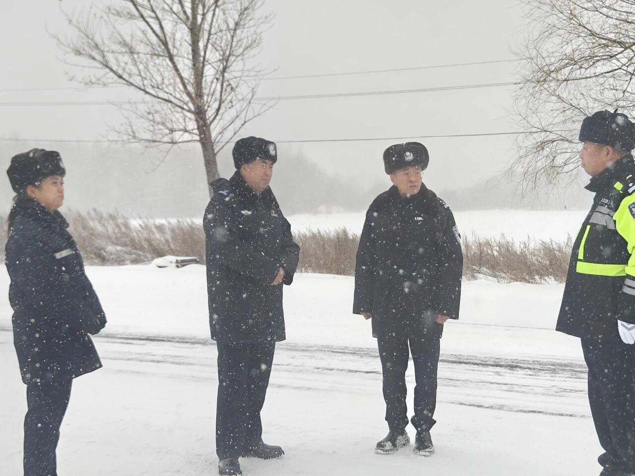在各執(zhí)勤現(xiàn)場,王秀東一行詳細詢問警力部署、路面通行、交通疏導、應(yīng)急物資儲備及隱患整改等工作落實情況,對全體執(zhí)勤人員頂風雪、冒嚴寒堅守崗位的擔當精神給予充分肯定,同時反復(fù)叮囑大家做好自身防寒保暖和執(zhí)勤安全防護,切實保障自身安全。