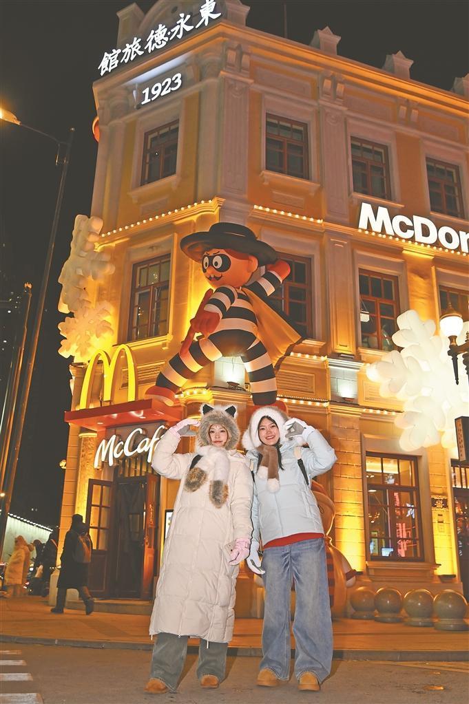哈爾濱中央大街化身光影盛宴與煙火市集。以“瑞馬迎新”為主題的創(chuàng)意燈飾點亮了這條百年老街,動態(tài)飛馬踏星而行的造型靈動逼真,“馬上鴻運”樹燈牌流光溢彩,與街區(qū)內的歐式建筑輪廓交相輝映,勾勒出一幅夢幻的冬日夜景。面包石鋪就的街道上人潮涌動,來自五湖四海的人們肩并肩、手牽手,共赴這場跨年之約。