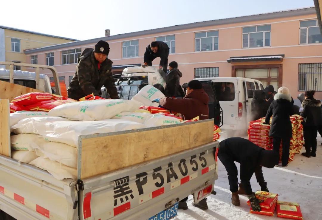 新林林業(yè)局職工正在領(lǐng)取慰問物資(冀威威 攝)