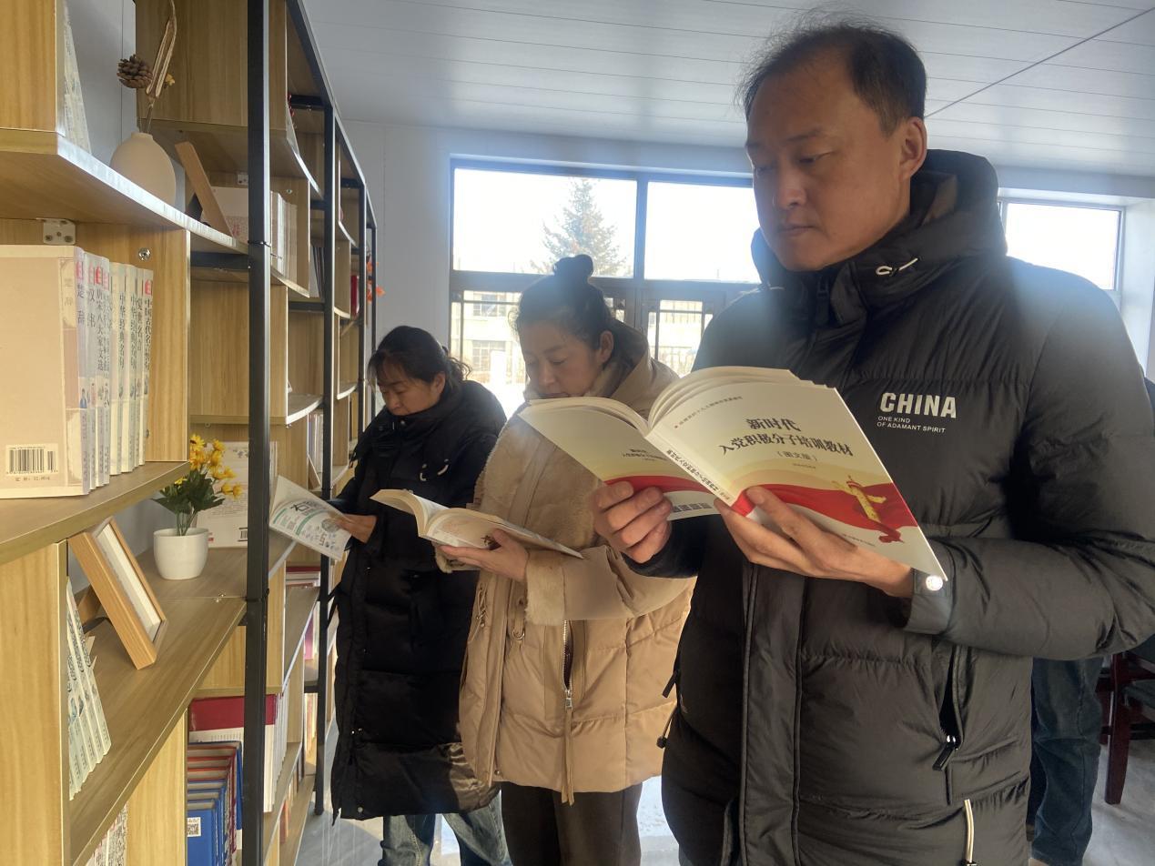 林場干部職工正在挑選閱讀書籍(佟超 攝)