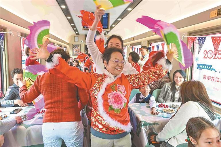 2025年,哈爾濱局集團公司秉持“慢旅行、深體驗、優(yōu)服務”理念,全新打造“悠享龍江·銀旅號”旅游列車。列車圍繞老年游客出行需要進行了41處適老化設計,將黑龍江的林海松濤、雪原冰河等山水元素與適老科技巧妙融合,打造出集康養(yǎng)、休閑、文化于一體的移動旅居空間。