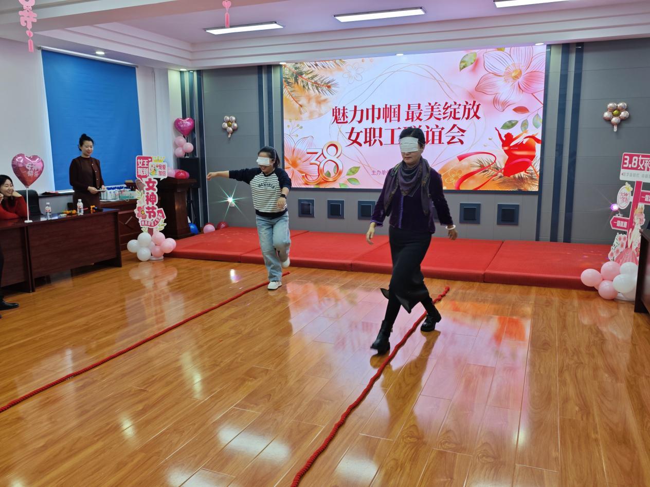 互動(dòng)游戲環(huán)節(jié)同樣妙趣橫生,“桃花朵朵開”“漏框接氣球”“蒙眼走繩子”“蒙眼喝飲料”等趣味項(xiàng)目,讓女職工們暫時(shí)卸下工作壓力,在比拼中增進(jìn)情誼,在歡聲笑語中放松身心。現(xiàn)場加油聲、喝彩聲此起彼伏,持續(xù)將活動(dòng)氛圍推向高潮。
