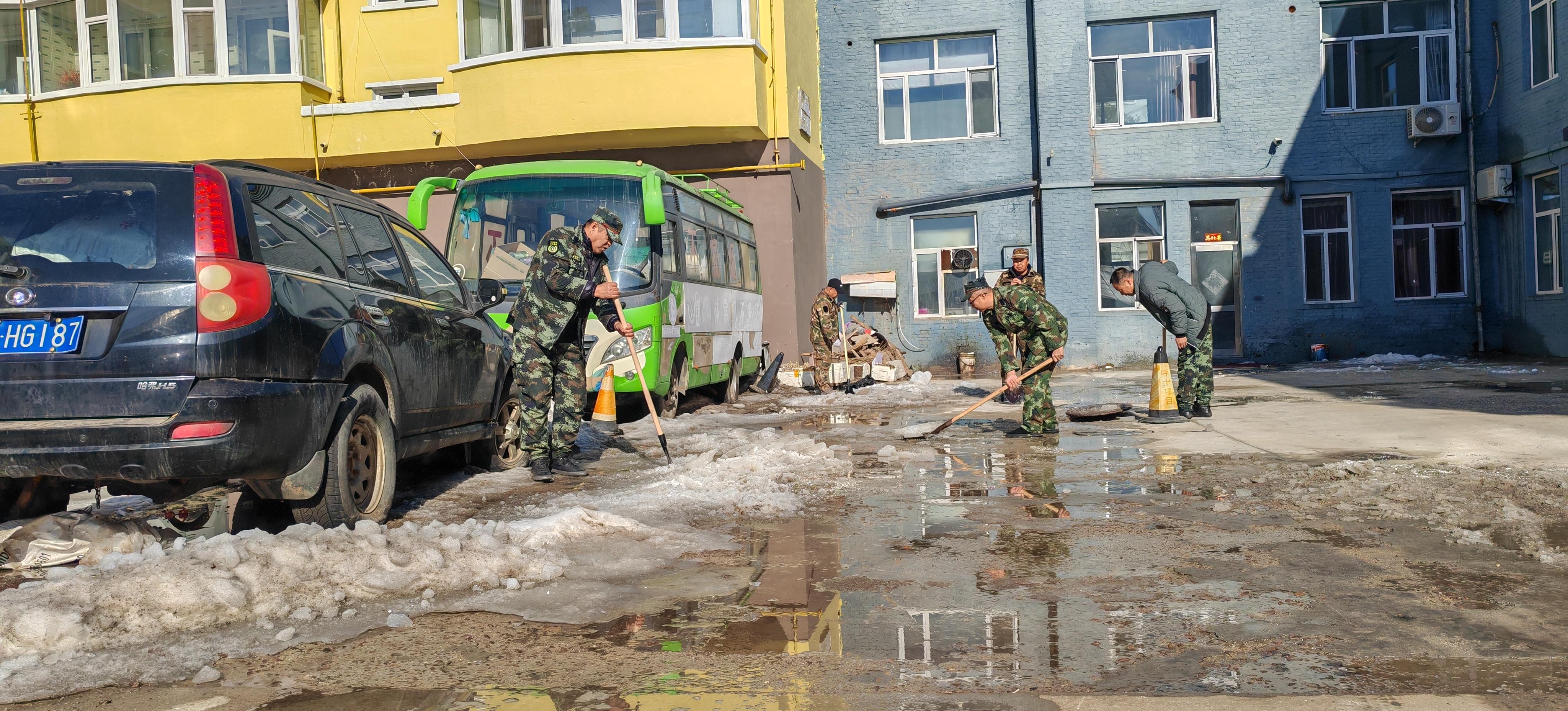 大家主動擔(dān)當(dāng),手持鐵鍬、掃帚等工具,分工協(xié)作、有序作業(yè)。認真鏟除樓前屋后的堅冰,細致清掃樓頂殘雪,不放過一處死角盲區(qū)。盡管春寒尚存,職工們依舊干勁十足,以飽滿的熱情投入到清理工作中。