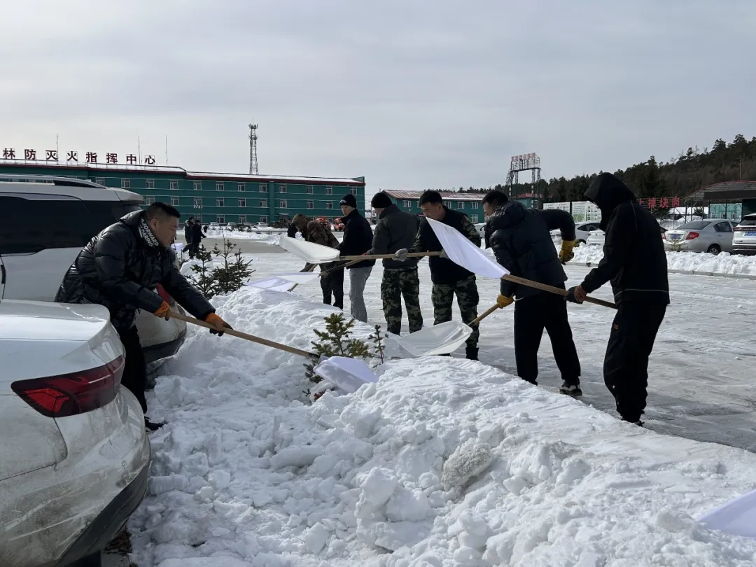 森林消防二大隊(duì)組織人員全面清理營(yíng)區(qū)主要道路積雪(侯高洋 攝)