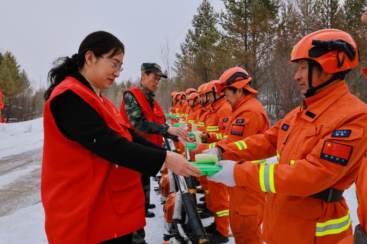 一線人員堅守崗位、不辭辛勞,后方保障溫暖人心、鼓舞斗志。在森林衛(wèi)士們奮戰(zhàn)一線的同時,林業(yè)局機(jī)關(guān)黨委積極行動,以主題黨日活動為載體,組織干部職工化身志愿者,將熱氣騰騰的餃子和豆?jié){送到一線值守人員手中,暖心的慰問與貼心的保障,讓堅守在崗位上的“森林衛(wèi)士”倍感溫暖,極大地提振了隊伍士氣。森林消防一大隊隊員梁光輝感動地說道:“感謝局領(lǐng)導(dǎo)的關(guān)愛,我們心里特別溫暖。清明有我們在崗,一定全力以赴,堅決打贏平安清明戰(zhàn)役!”