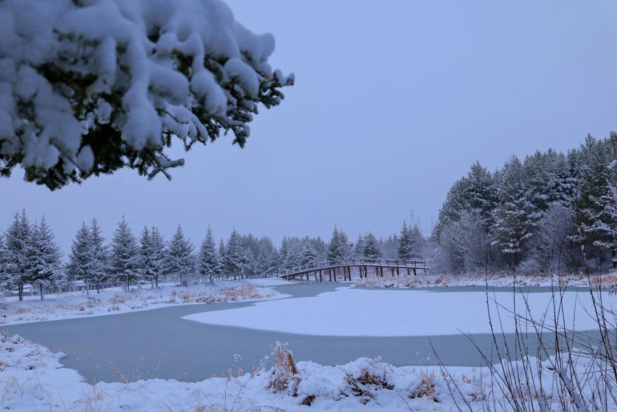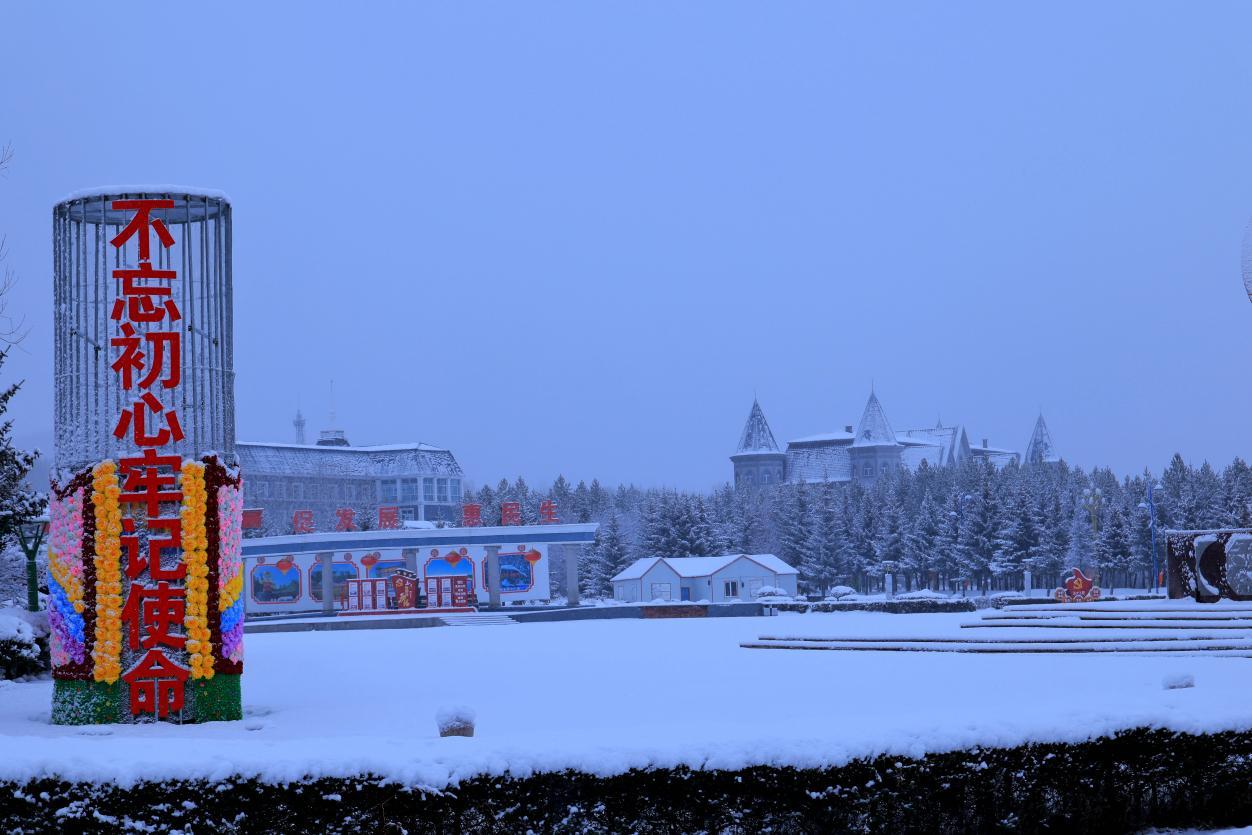 阿木爾林業(yè)局藍莓廣場被白雪覆蓋,宛如童話世界(王力 攝)